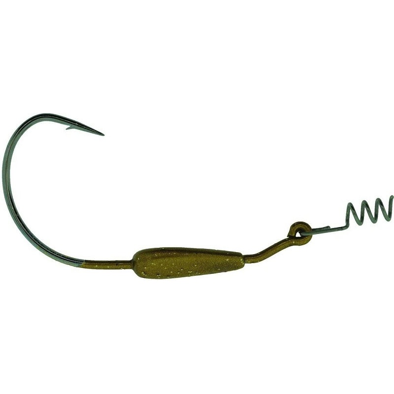 Used for saltwater or freshwater, these hooks will prove themselves to be a must for your tackle box! Available in 3/0 and 5/0 sizes, our new weighted swim hooks give added action and vibration to our deadly plastics. They come in three colors: watermelon/red glitter, gold, and clear/silver glitter.