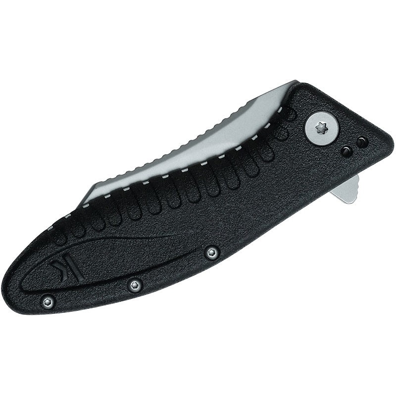 The Kershaw Grinder is designed to be put to work. It offers a blade with a slightly curved belly for all-purpose cutting and slicing. A clipped, tanto-inspired tip offers excellent piercing capabilities, too. If you need to bear down on the back of the blade during a particularly tough cutting job, the concave spine with heavy jimping provides additional grip security. The work-ready blade is made of 4Cr13 steel for solid service.