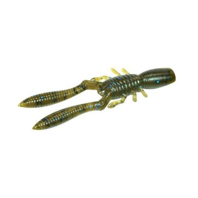 The Megabass Bottle Shrimp is a 4 inch hog-type worm creature bait that imitates freshwater prawns and crayfish, one of the main types of bait used around the world. When used for Texas rigs and jig trailers, the large power arms move dangerously, mimicking the defensive actions of crayfish. With bottom contact, the inertia of the weighted arms will cause a shivering action that starts at the tips of the arms and runs to the base, triggering bites.