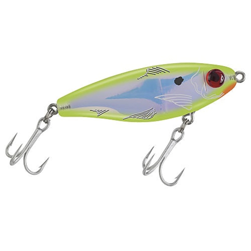 Twitching side to side like a wounded baitfish on the retrieve, this lure proves you can’t sneak an easy meal past a hungry fish. The XXL-wide body profile and realistic baitfish pattern induces violent strikes. Reflective, luminescent inserts, fish-calling rattles and realistic 3-D eyes create an irresistible combination to trout, redfish, snook, striped bass and tarpon. Each comes rigged with extra strong hooks.