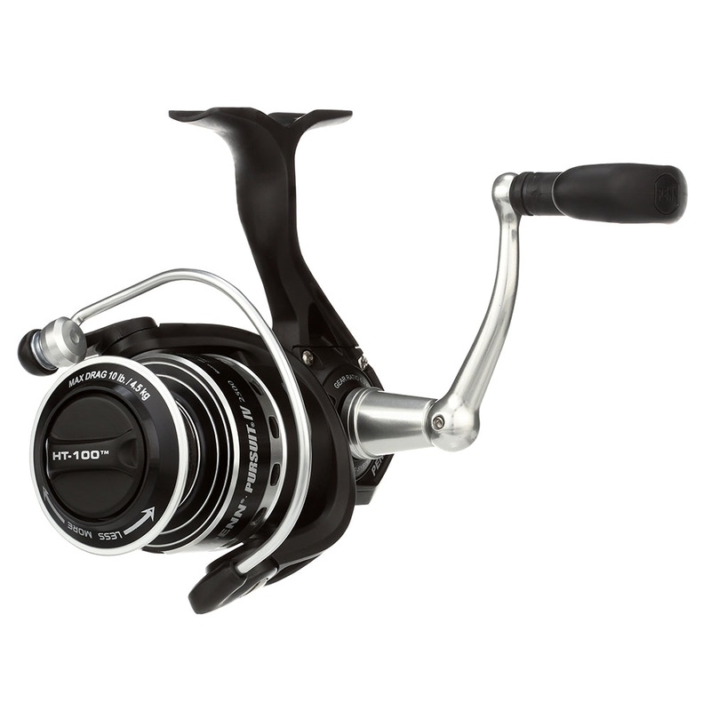 The PENN Pursuit IV features durable construction and the smooth gear system anglers expect from PENN. This reel features an ultra-lightweight, corrosion-resistant graphite body and powerful HT-100 drag system making the Pursuit IV a great value for the money for saltwater anglers. Available in six sizes from 2500 to 8000, the Pursuit IV has a reel for most fisheries. The Instant Anti-Reverse bearing eliminates even the slightest rotor back play for instant hook-ups every time, while the 4 sealed stainless steel ball bearings provide smooth retrieves.
