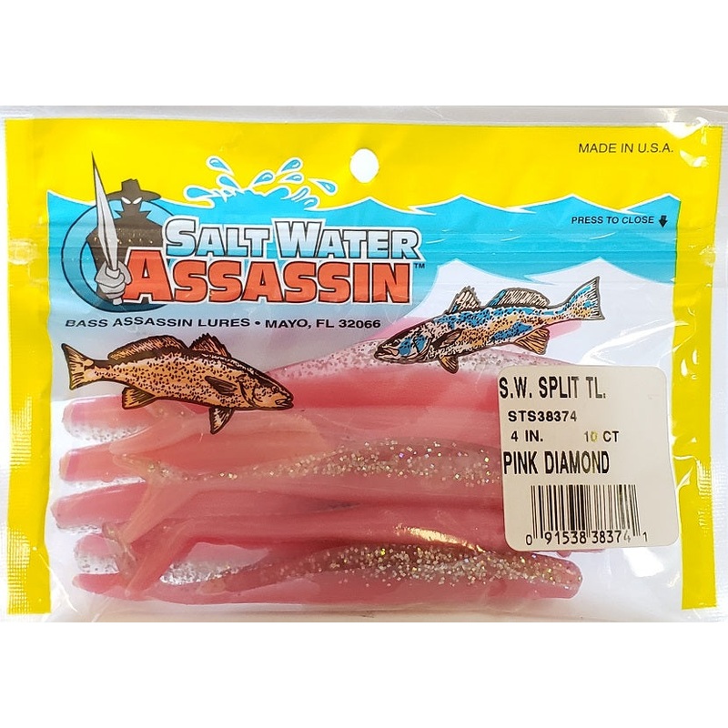 SaltWater Assassin Split Tail Pink Diamond 4″ 10pk