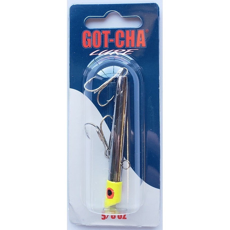 The ORIGINAL GOT-CHA lure is a tried and true fishing lure. The 1600 and 1700 series have slim metal body that is 2 5/8″ long with #4 tail hook and #4 body hook. The 1600 series is silver body with silver hooks, the 1700 is gold body with gold hooks.