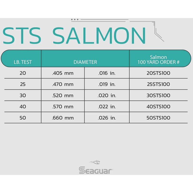 Seaguar STS Salmon Trout Steelhead Fluorocarbon Leader is afast-sinking line that gets you in the “strike zone” quicker. Also, with a lower refractive index than monofilament, it is significantly less visible underwater. Move over mono, Seaguar STS Fluoro is the new optimum leader material choice for targeting salmon, trout, kokanee, and steelhead.