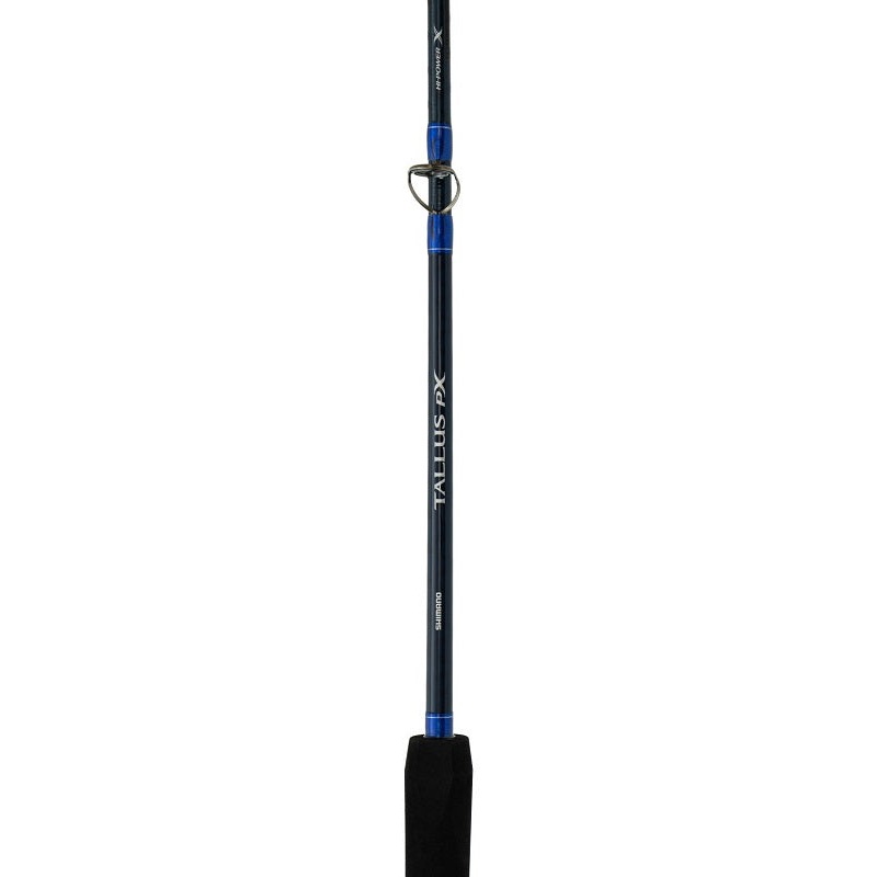 Greatly improving upon one of Shimano’s most successful line of saltwater rods, the Shimano Tallus PX Casting Rods make use of advanced blank technologies for unrivaled performance in their class. Specializing in versatility, the Tallus PX eliminates the heavy and bulky feel that often comes along with rods deemed as “multipurpose boat rods”, which are generally uncomfortable to use. Built on blanks featuring Hi-Power X reinforcing technology, the Tallus PX increases overall strength and responsiveness while keeping the rod blank lightweight and comfortable to fish. The Hi-Power X blank is built with an outer layer of carbon tape that tightly winds the blank diagonally in opposite directions, resulting in enhanced torsional rigidity to reduce twist and ovalization. Hi-Power X technology enhances performance by transferring energy efficiently through the rod to increase casting distance and provide improved lifting power when fighting fish. The versatile Tallus PX is a great option for any saltwater angler who is live bait fishing, chunking, bottom fishing with heavy weights, or even trolling.